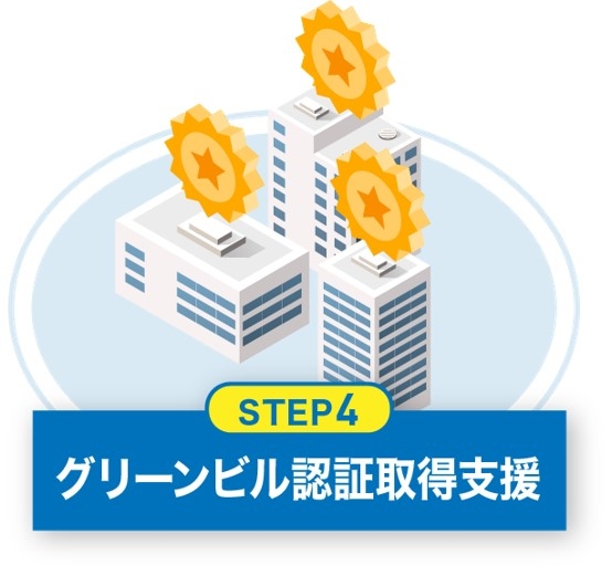 設備改修時に建物のグリーンビル認証取得に向けた調査を実施し、顧客ニーズに応じてBELS※4、CASBEE不動産※5等の認証取得支援および評価向上の提案を行います。