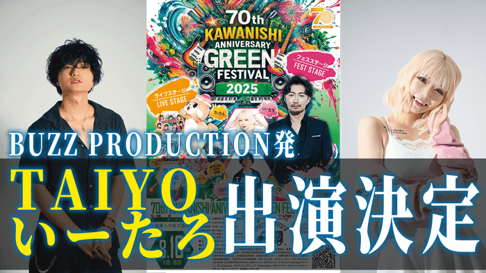 川西町制70周年記念事業 KAWANISHI GREENFESTIVAL 2025 ~未来へつなぐ提言~ BUZZPRODUCTION〈バズプロダクション〉所属 TAIYO S/B from a-CREW 出演決定!