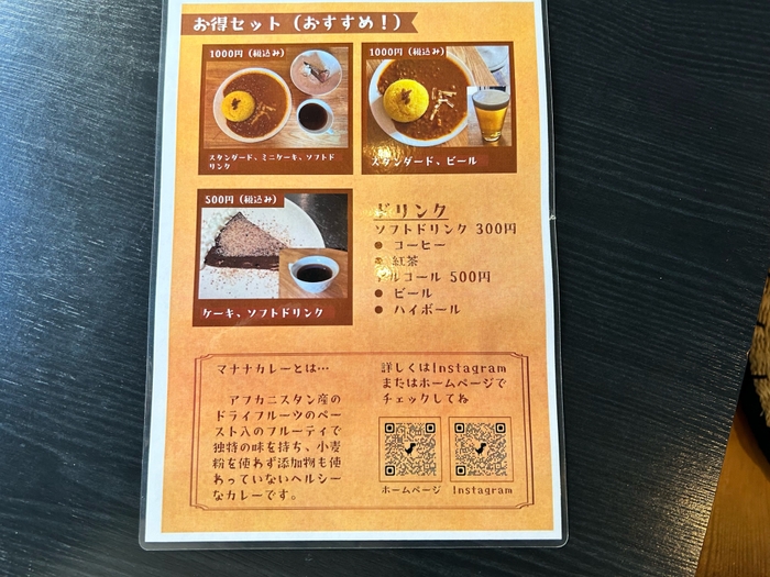 アフガニスタン産のドライフルーツペーストが隠し味のサラサラカレーとデザートを提供する間借りカレー店、それがデーラマナナです。
