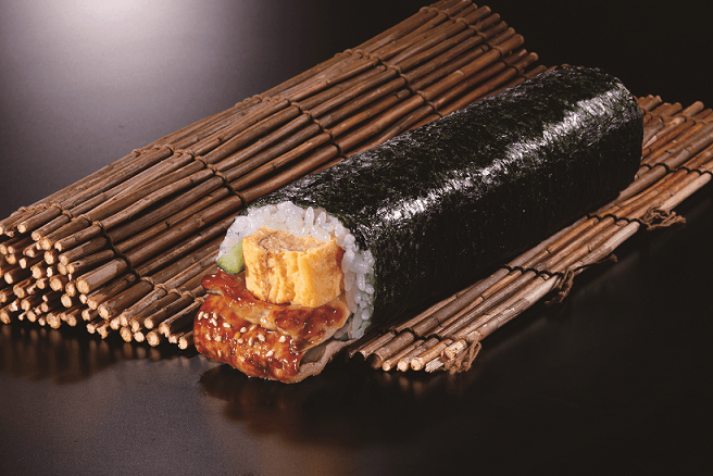 活〆穴子を釜炊きして、ふっくらと柔らかく仕上げました。極太玉子と穴子の相性が抜群の太巻です。