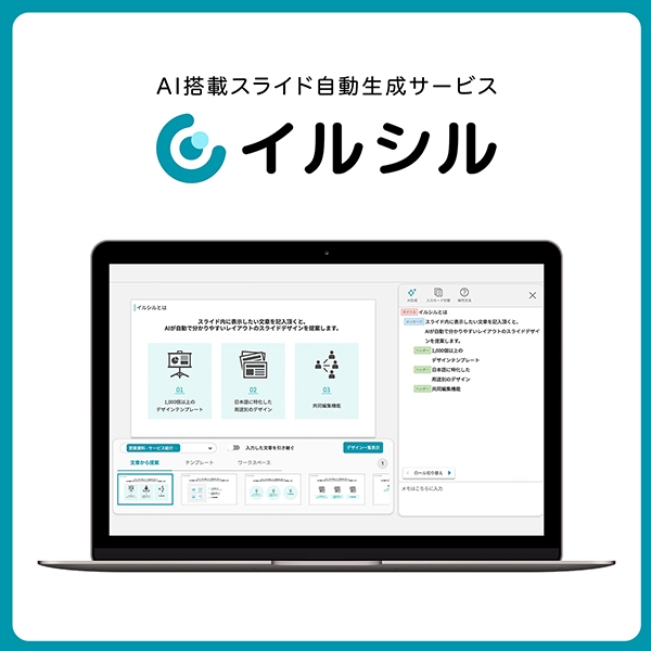 AI搭載スライド自動生成サービス「イルシル」は、スライド資料作成時間を効率化し、誰でも簡単に作ることができるサービスです。