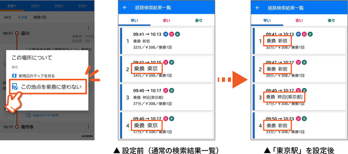 “乗換に使用しない駅・バス停”を設定した検索が可能に! Android版「駅すぱあと」で先行リリース