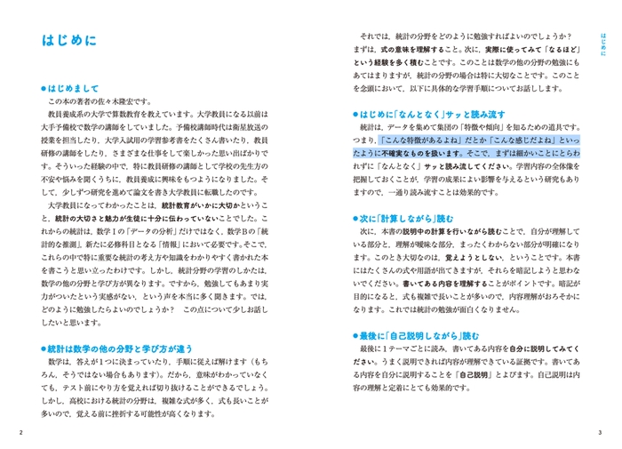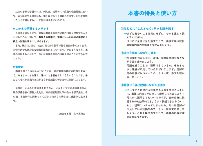 また、本書は、高校で学ぶ統計分野の基礎となる「考え方」を扱っているので、現行課程で学んでいるみなさんにも十分役立つ内容です。