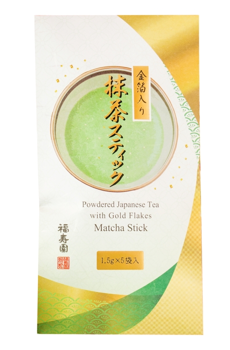 キラキラと輝く金箔を混ぜ込んだ緑鮮やかな抹茶を、お手軽に楽しんでいただけるよう、1杯分ずつ使える手軽なスティックにお詰めいたしました。