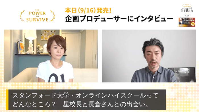 スタンフォード大学・オンラインハイスクールの校長、星友啓先生の処女作『スタンフォード式 生き抜く力』の企画プロデューサーである長倉顕太さんが、9月16日、日本最大級の朝活サロン『めざチア』にゲスト出演。インタビューの中で、本書にかける想いなどをお話いただきました。