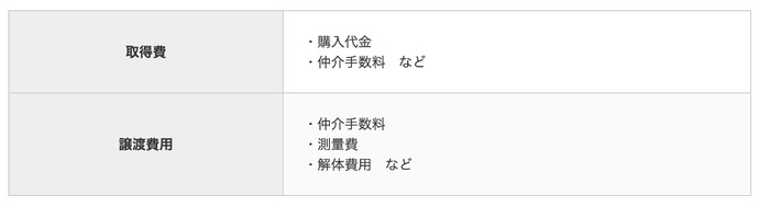 取得費と譲渡費用に含まれる費用は、次の通りです。