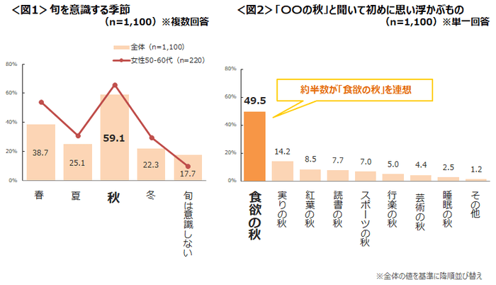 今回は旬を意識する季節や「〇〇の秋」と聞いて初めに思い浮かぶもの、「秋に旬の食べ物」として食べたいものについて分析しています。