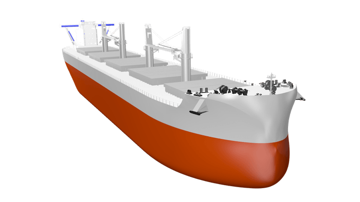 常石造船D/W 6万3700mt型散装貨物船“TESS64 AEROLINE”首次亮相装载有减少风压阻力等新技术,燃油效率提高20%