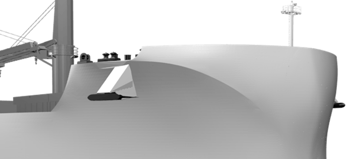 ・采用了减少船首波浪阻力的“SEAWORTHY”技术。即使波浪很大,其阻力也会变小,最大可减少货物装载时的海上功率 裕度(波浪中增加的阻力)约5%。与广岛大学共同开发。