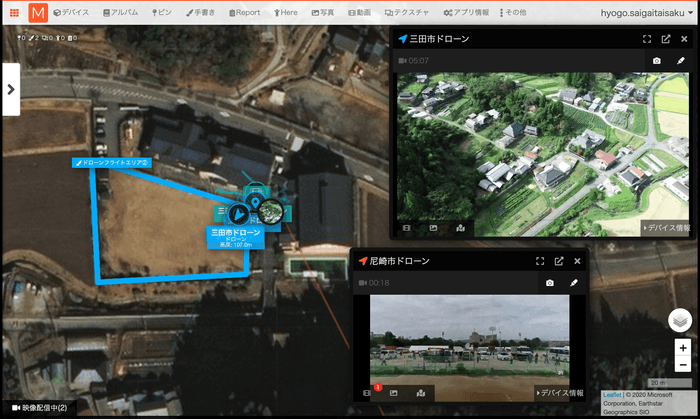 EDAC、兵庫県阪神地域の防災訓練に協力。ドローン・スマートフォン・映像伝送システムを活用し、リモートによる “新しい防災訓練”を実施