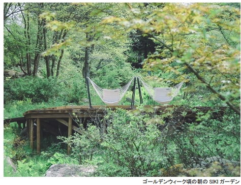当施設内「SIKIガーデン」では、六甲山の自然と調和したナチュラルガーデンをコンセプトに植栽を行い、約300種類の四季折々の樹木や花々を見ることができます。六甲山は市街地より気温が5℃ほど低い為、春は花期が1か月ほど遅くなります。「ヒツジグサの池」の側に設置されたベンチやハンモックで、ウグイスなどの鳥のさえずりに耳を傾けるなど、ゆっくりとした時間が過ごせます。