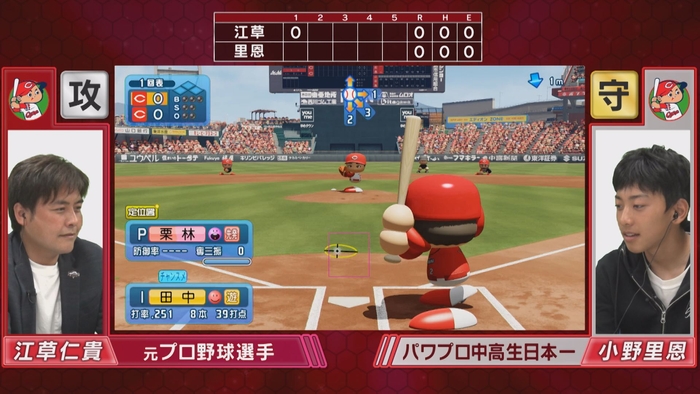 パワプロ歴3年で日本一になり、夢はeBASEBALLのプロプレイヤーという小野選手。元プロ選手の江草さんとどんな対決を繰り広げるのか。ぜひご覧ください!