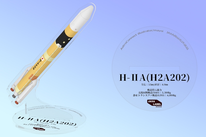「ロケットアクスタ」は、JAXAが打上げたロケットのイラストが描かれたアクリルスタンドです。ロケットのイラストは、斜め上から描くことで全体のイメージがつかみやすいと言われる「アイソメトリック図法」で描画されています。