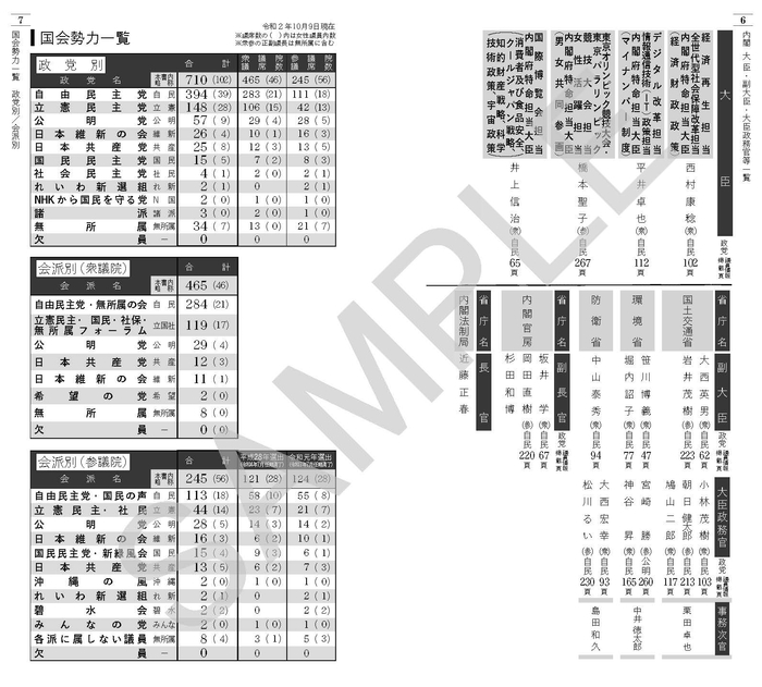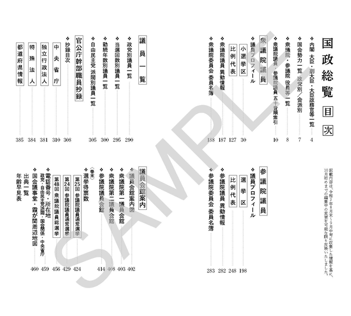 この度、株式会社国政総覧刊行会(東京都千代田区、代表取締役:築地 正)は『国政総覧』令和2年10月版を刊行いたしました。