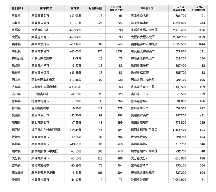 ・全国1位は「福岡県北九州市門司区」の+44.14%。