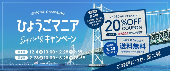 兵庫県公式オンラインショップ「ひょうごマニア」、レディースアパレルを中心としたECサイト「イーザッカマニアストアーズ」を運営している有限会社ズーティー(本社:兵庫県神戸市、代表取締役:今石 雄介)は、2022年2月28日(月)から兵庫県公式オンラインアンテナショップ「ひょうごマニア」内にて「ひょうごマニアSPECIALキャンペーン」の第2弾をスタートいたしました。