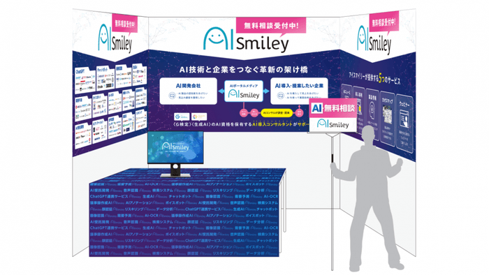 会場では、生成AIサービスを取り上げるAIポータルメディア「AIsmiley」の活用方法のご案内とAIプロダクト導入の相談を受け付けます。