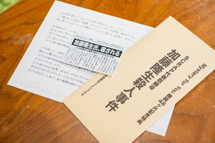 新聞記事の切り抜きと須蔵と名乗る刑事からの突然の手紙で、「株式会社SCRAPの代表取締役である加藤隆生氏が何者かによって殺された」ということを告げられるあなた。同封されている加藤隆生からの手紙の冒頭は「この手紙を読んでいるということは私は死んでいるということか。」なんとも不穏な滑り出しで始まる本作は、記念すべき48ヶ月の継続特典のために、代表取締役兼コンテンツディレクターの加藤隆生、同じくコンテンツディレクターの久留島隆史が作成した新作の謎解きです。果たしてあなたは加藤を殺した犯人を見つけ出すことができるのでしょうか。なお、事件はフィクションですのでご安心ください。