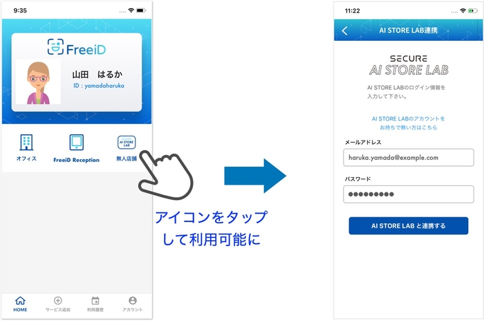 FreeiDとAI STORE LABが連携することで、FreeiD登録ユーザーは顔認証で入店や決済が可能となり、手ぶらで決済が行えたり、手に取った商品の口コミを確認出来たり、新しい購入体験を実感出来ます。