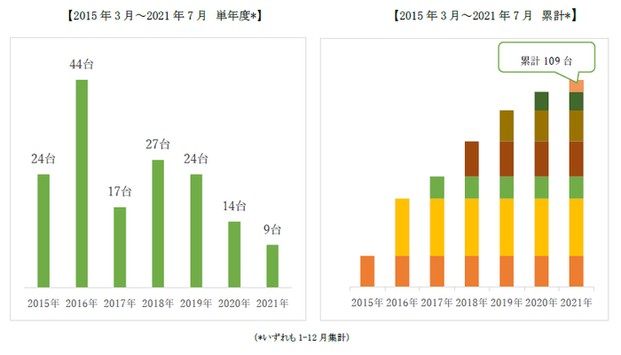 当社では2015年3月以降、企業が自社の安全教育や危険予知トレーニングを継続的に社内で実施できる体制をつくるため、ドライブシミュレータを設備として持つことを提案しています。約6年で下記のような実績となっています。