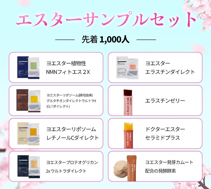 先着1000名様に贈呈するサンプルセットには、エスターフォーミュラ人気商品全8点をお試しいただけます!