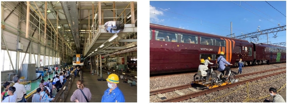 床下ピット探検隊(2022年の様子) レールサイクル乗車体験(2022年の様子)