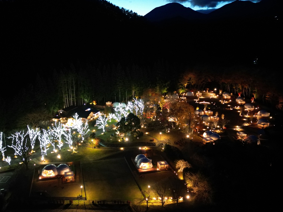 おかげさまで1周年をむかえることができました。 オープン1周年限定プラン予約販売開始(またやっちゃいます!) グランピング×イルミネーション【ブリリアントヴィレッジ日光】