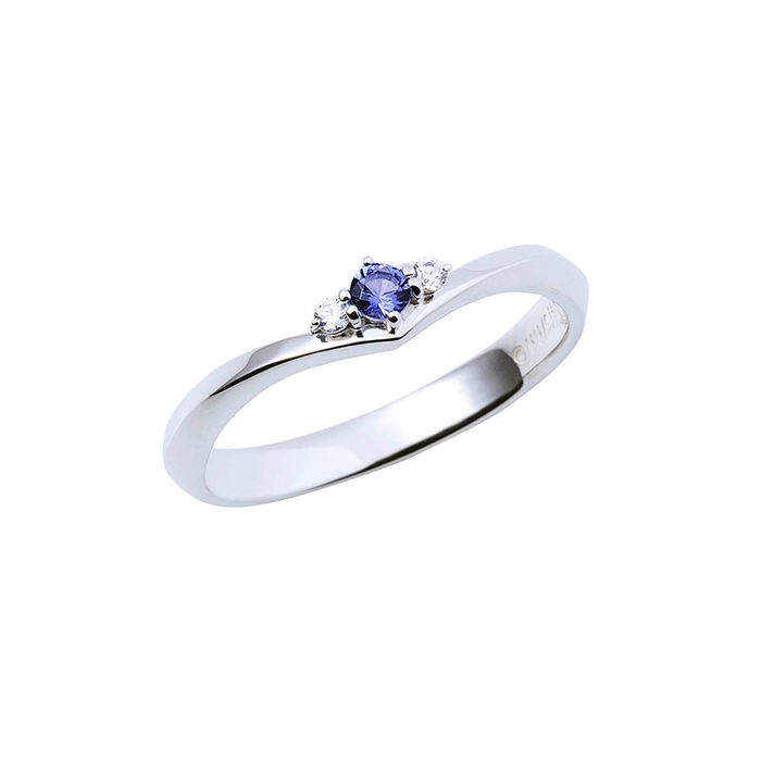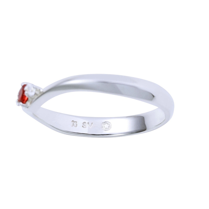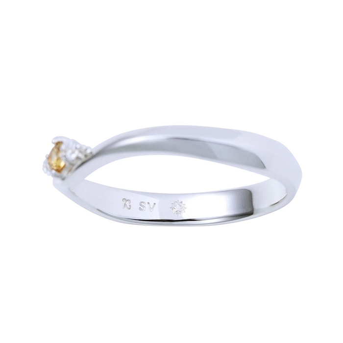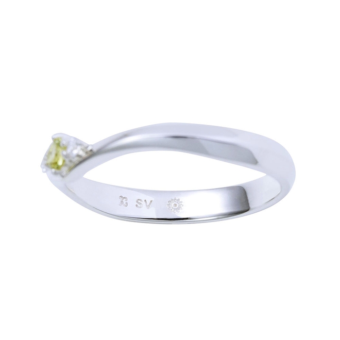 V字フォルムにイメージカラーストーンをセットしたシンプルなデザイン。