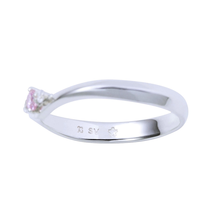 片方は桜の花のモチーフ、もう一方はイメージカラーストーンをセットした一粒タイプのアシンメトリーなデザイン。