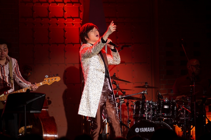 後半は、鮮やかな黄緑のジャケットに着替えて登場。ギターの演奏のみで長谷川きよしの『別れのサンバ』、オリジナル曲『くちなしの雨』を歌唱し、ムーディーなステージを作り上げた。そして、リズムに合わせて体を揺らしながら『愛の嵐』、越路吹雪の『愛の讃歌』を歌唱。高らかに歌う竹島の姿に、たまらずファンからは歓声が上がった。
