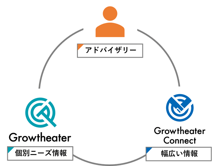 海外情報を紹介する既存メディアは情報の提供のみに専念してきました。Growtheater Connectでは、海外スタートアップシーンの情報だけではなく、既存サービスのGrowtheaterを通じた個別企業の具体的なニーズ情報、アドバイザリーサービスを通じた海外企業との提携支援まで一貫して提供します。