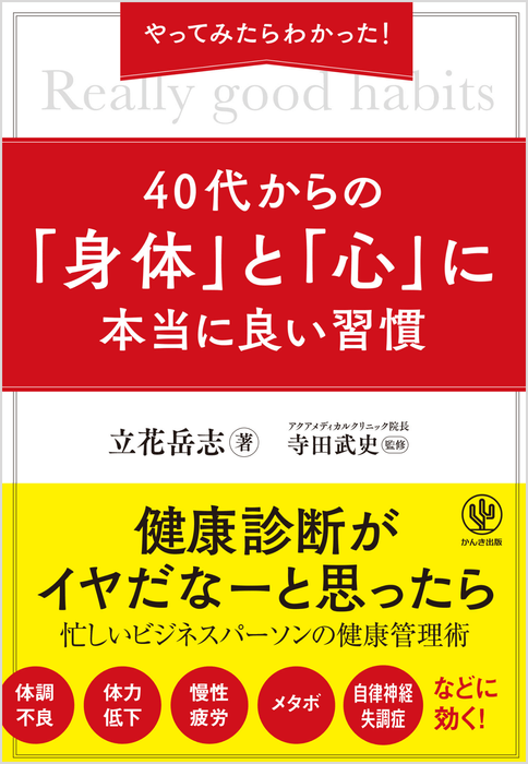 株式会社かんき出版(本社:千代田区 代表取締役社長:齊藤龍男)は、『やってみたらわかった! 40代からの「身体」と「心」に本当に良い習慣』(立花 岳志/著 寺田 武史/監修)https://kanki-pub.co.jp/pub/book/details/9784761276577を2023年2月22日より全国の書店・オンライン書店等(一部除く)で発売いたします。