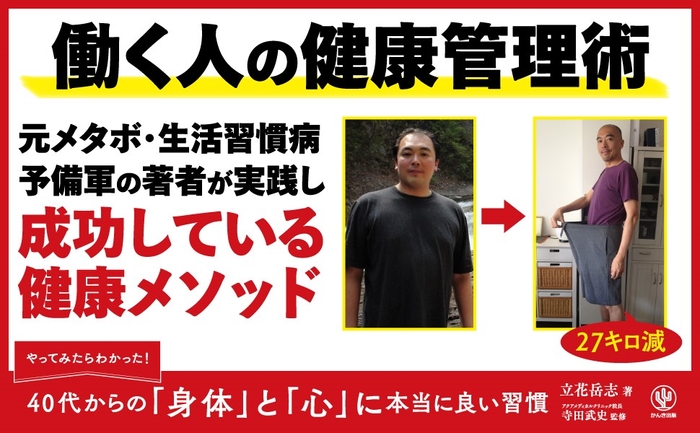 「身体」「心」の健康に不安がある40代以上の皆さんへ。27キロのダイエットに成功した著者が伝授する、実際に効果があった「健康習慣」