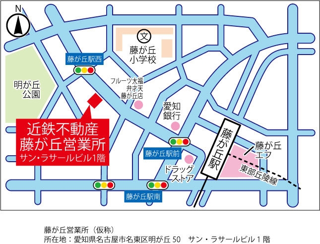 当営業所は、名古屋市営地下鉄東山線および「愛・地球博記念公園」駅を通る東部丘陵線、それぞれの始発駅である「藤が丘」駅から徒歩4分の立地に出店し、名東区・長久手市等を中心とした名古屋市及びその周辺地域での営業活動を予定しています。
