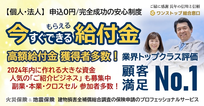 ~自然災害・人的損害・付帯補償/損害総合鋭意調査/保険申請全サポート/ベストアドバイス業務~