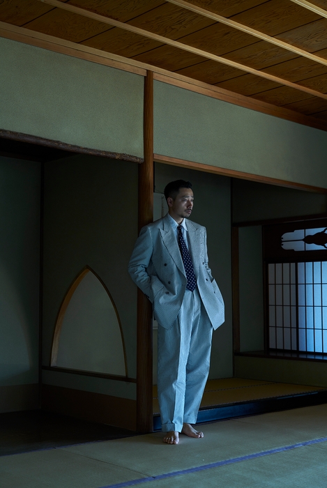 写真家でありながら、トラディショナルな装いでも注目を集める長山一樹氏とのコラボレーションで実現したのは、80年代の雰囲気漂うクラシックなシアサッカースーツ。