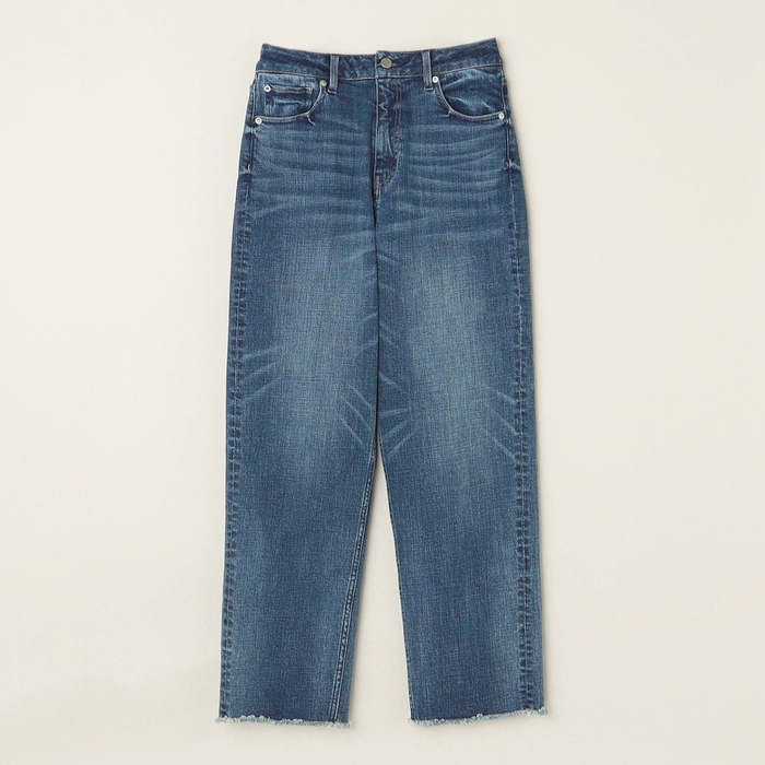ブランドのキーアイテムの一つである、デニム。身体のラインを拾いすぎない程よい素材感と、ワイドシルエットに入れた前後のセンタープレスで、すっきりとした印象に仕上げたデニムパンツです。ブレザーやブラウスなどのONスタイルのアイテムと合わせても、大人っぽく、ほどよくエッジの効いたスタイルが叶います。裾のラフなフリンジは上品に仕上げて、程よいルーズさのあるシルエットがこなれ感を演出してくれます。ストレッチも程よく効いて、柔らく履きやすいデニムパンツです。