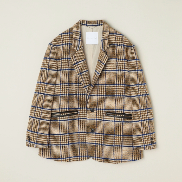 オーセンティックなボックスシルエットが特徴のメンズライクなオーバーサイズジャケット。ラフな雰囲気になるように、細身のラペルのバランスや、肩回り・内側の芯地の選定にもこだわり、作りこんだ1着です。高品質な生地で定評のあるイタリアの生地メーカー「INTESPRA」社のquaranciel別注のチェック生地を使用しています。