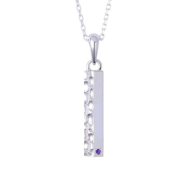 イメージカラーのアメジストをセット。裏面には右手のタトゥーを刻印しました。