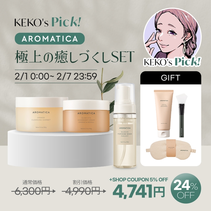 韓国ヴィーガンコスメブランド「AROMATICA(アロマティカ)」は2024年2月1日(木)〜2月7日(水)までインターネット総合ショッピングモール「Qoo10」が開催する「メガポ」セールに参加いたします。期間中は購入価格の20%をポイント還元も実施!さらに韓国スキンケアには容赦なしのコスメインフルエンサーケコさんとのコラボセットを販売。冬の乾燥対策にピッタリなスペシャルセットがお得な価格になっていますので、この機会に是非チェックしてみてください。