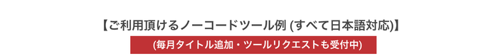 3タイトル・3名・1,500円から利用できる、50タイトル以上(年内120タイトル予定)の世界中の人気ノーコードツールを、今すぐチェック!