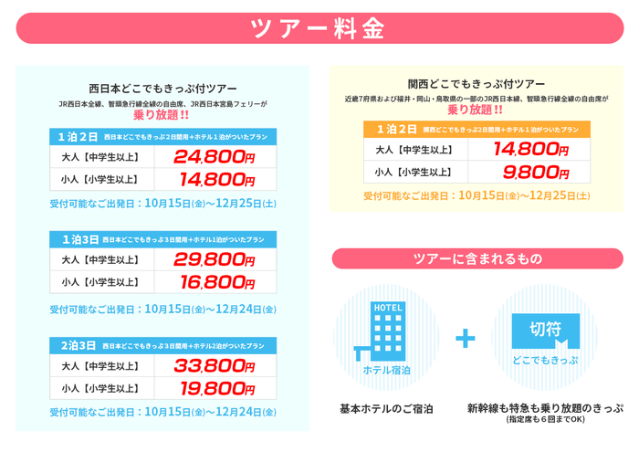 ※『関西どこでもきっぷツアー』・『西日本どこでもきっぷツアー』がございますのでご注意下さい。