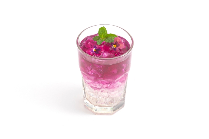 更紗ちゃんの1番のお気に入り、菫色のシュワっと弾けるレモネードソーダです。