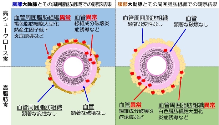(高脂肪食および高シュークロース食が、胸部および腹部大動脈周囲の脂肪組織の生理機能に及ぼす影響の違いについて)