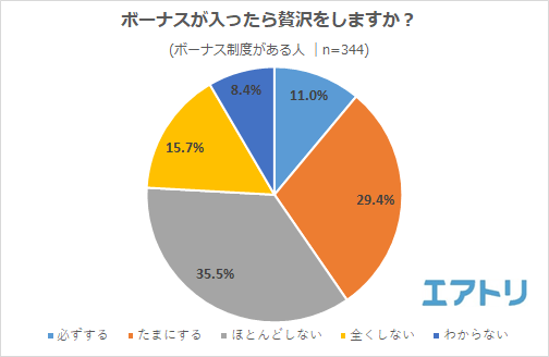 調査4:(ボーナス制度がある人)ボーナスが入ったら贅沢をしますか?