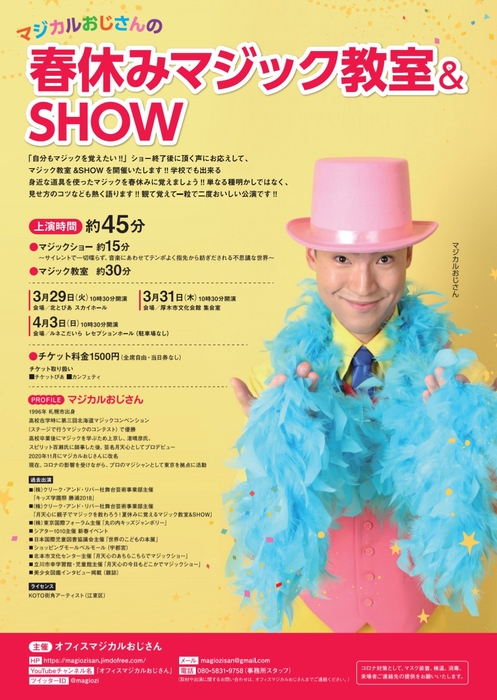 オフィスマジカルおじさん主催「マジカルおじさんの春休みマジック教室&SHOW」