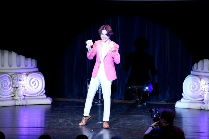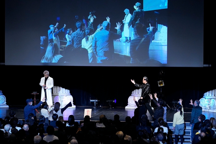 “スーパー4Kマジック”恒例企画の「見破りバトル」には、東京夜公演では、ハリウッドザコシショウが登場した。この企画は、Mr.マリックが目の前で仕掛ける超魔術のトリックをその場で見抜けるかどうかを競うバトルだ。この日は、東大に推薦入学した天才・岡本優真、枝豆順子とハリウッドザコシショウがバトルに挑む。それぞれがトリックを予想した後、観客は誰の答えに賛同するかをスマホから投票するなど、一緒になって企画を楽しめる仕掛けが随所に施されており、ショーに参加している気分をより味わえた。この日の結果は1勝1敗。岡本が正解を導き出すと会場には大きな歓声も上がった。
