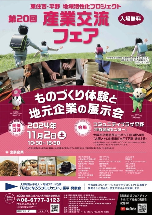 大阪市平野区・東住吉区発 ものづくり体験と地元企業の展示会 「第20回産業交流フェア」11月2日開催
