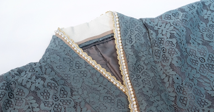 パールや金色のレースを使った重ね衿でかわいいだけでなく高級感あふれる仕上りとなっております。