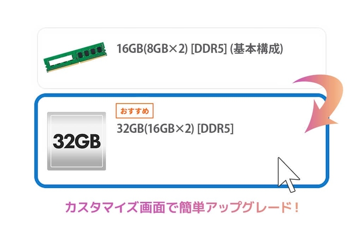 【BTO標準構成】各種カスタマイズが可能な「BTO(Build to Order=受注後生産方式)」に対応しています。